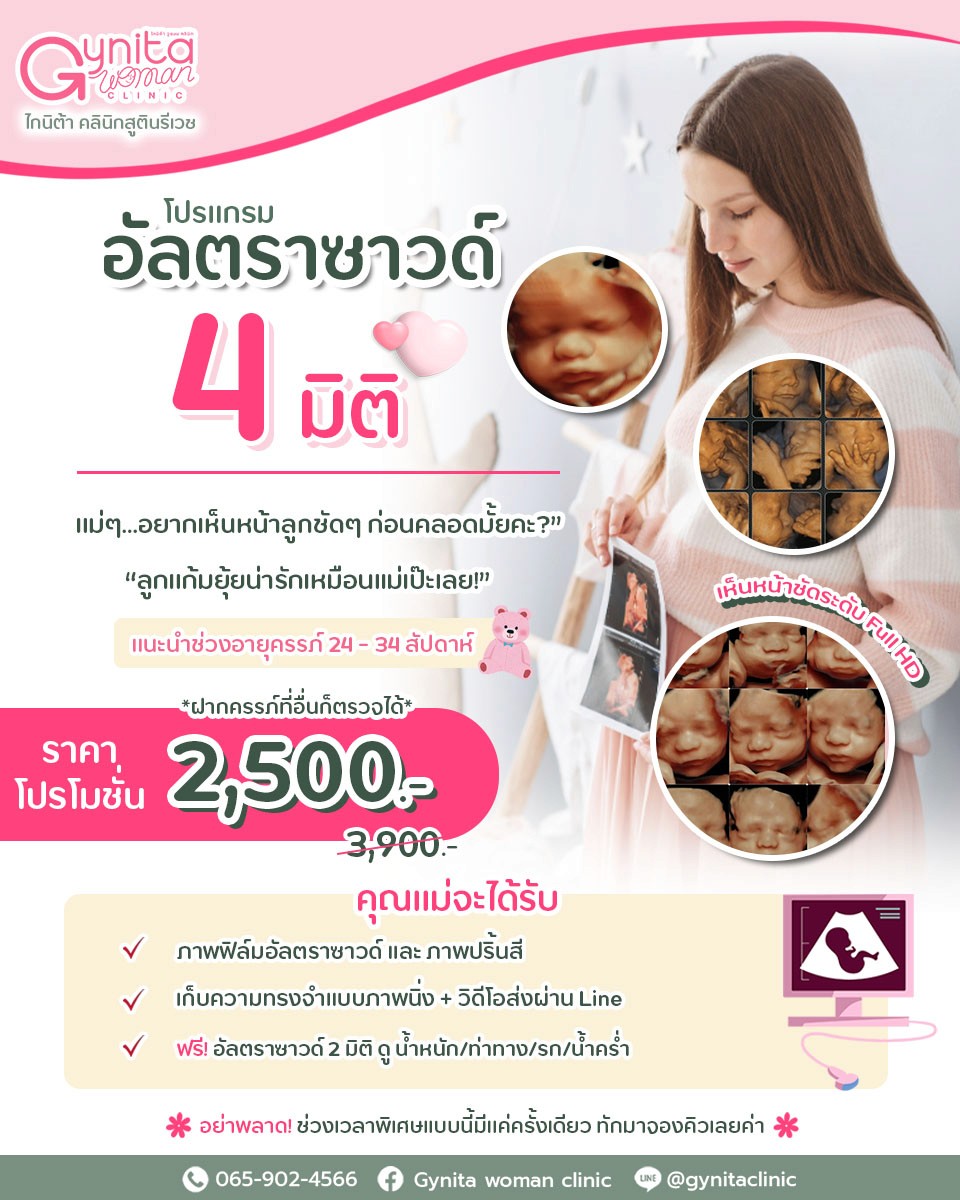 อัลตราซาวด์ 4 มิติ ราคา 2,500 บาท (รวมทุกอย่างแล้ว)